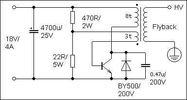 Este circuito necesita una fuente de alimentación de alto voltaje, que se describe a continuación.