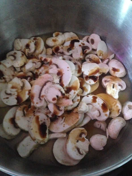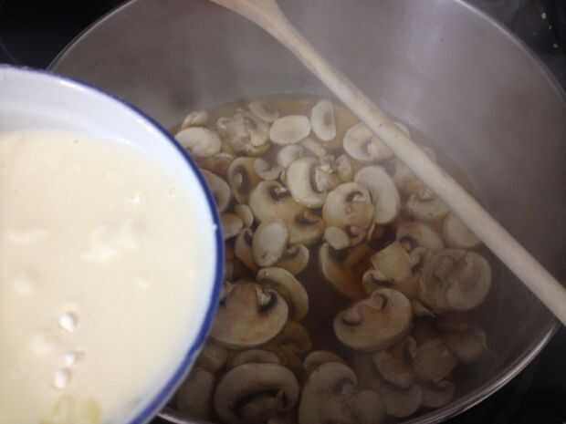 Añadir los champiñones en rodajas y condimentar con salsa de Worcestershoer, hierva