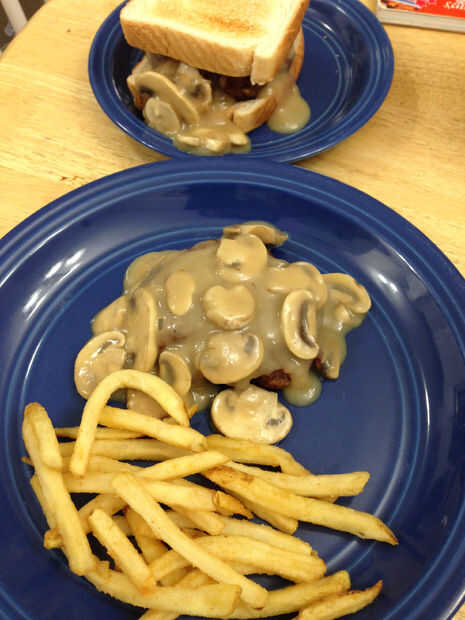 Coloque las hamburguesas en servir y cubrir con salsa de setas, servir inmediatamente