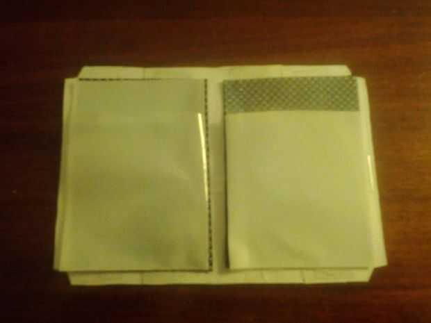 3. doblar y colocar las bolsas en el interior de la cartera.