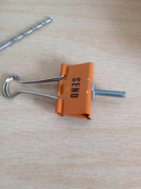 Haz un 11/64 tuerca y el perno y apriete en la parte posterior del clip de papel