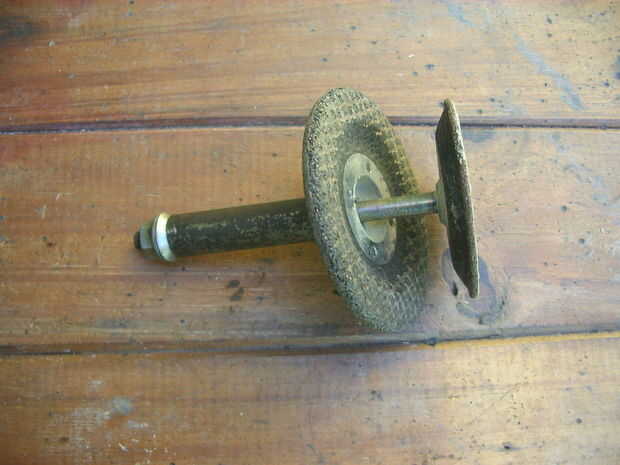 Soldar una arandela grande a la cabeza del perno y buscó algunos utilizan discos de amoladora para uso también como arandelas. Me pegado con masilla de manitas (el mismo podría han utilizado adhesivo epoxi) una amoladora de disco gastado de la arandela del extremo. Con un trozo de tubo metálico hizo un espaciador para fijar el mango a la tuerca. Finalmente soldar una tuerca al extremo de otra pieza de la misma tubería, que coincidentemente había ya doblado el otro extremo lo perfecto para lo que iba a utilizar. En caso de que usted no sabe todavía, los émbolos es eficaz empujando, pero están tirando mucho más.