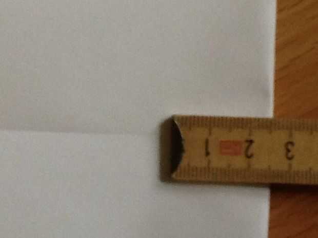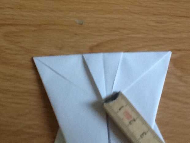 Doble la punta hacia abajo en los puntos exteriores del diamante. Luego doble la punta a la base y luego, unos 2,5 cm hacia abajo desde el último pliegue.