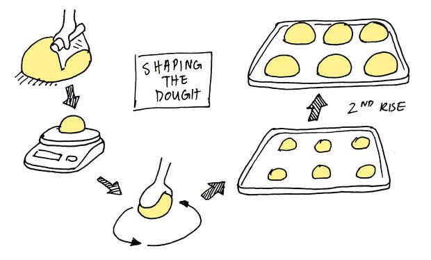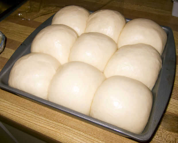 Saber el peso total de la masa, ahora puede decidir cuántos bollos que desea hacer y dividir por consiguiente. Generalmente obtengo sobre 15 bollos de tamaño rollo de cena. Dividiendo la masa igual peso es importante para asegurar una cocción uniforme.