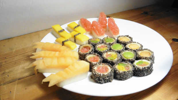 Ingredientes: Plátano, toronja, naranja, Mango, jícama, melón o Kiwi, melón, semillas de Chia, miel y jugo de limón/limón