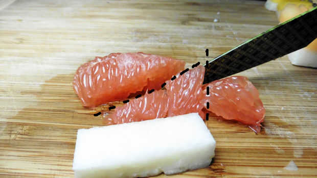 2. Cortar para que sea la misma longitud que la jícama (2").