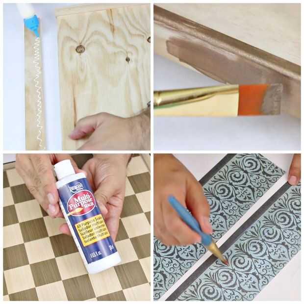 Pegamento el 22 "x 1 1/4" piezas a lados opuestos de la madera contrachapada