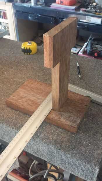 Una vez cortada, había puesta la línea central y localizar la placa base. Me perforó un agujero y lo llevó a la sierra a corte el agujero rectangular para la base a.