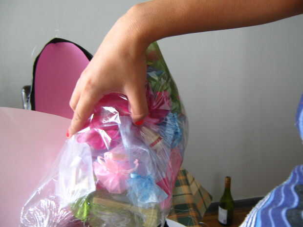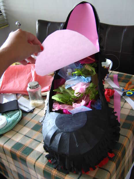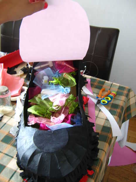 ponerse las sorpresas y cubrir la piñata de talón con una cartulina color rosa agradable!