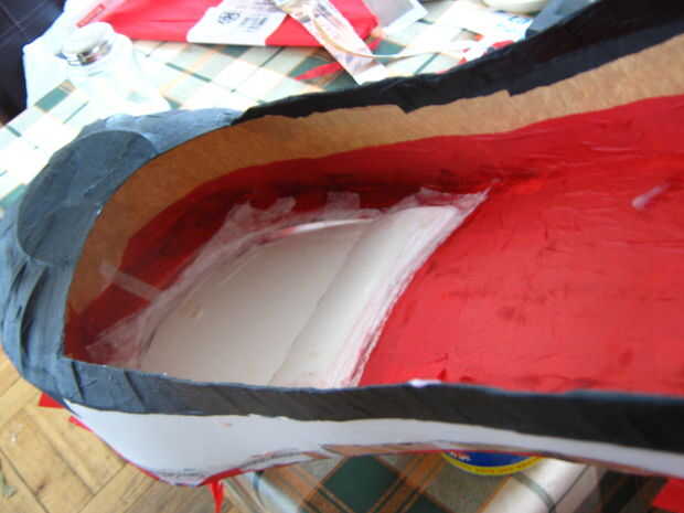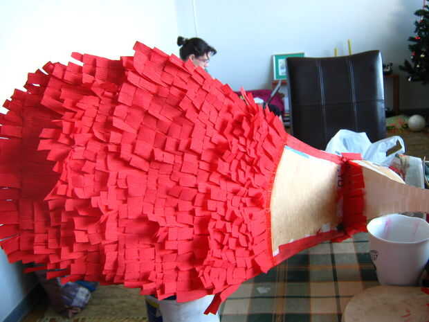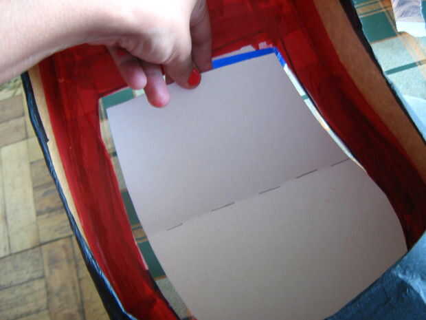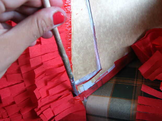 continuar pegar el papel crepé y agregar la puerta para dejar las sorpresas