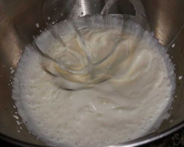 Agregar la crema, el azúcar y el extracto de vainilla en un tazón y batir para arriba! Reservar para más tarde.