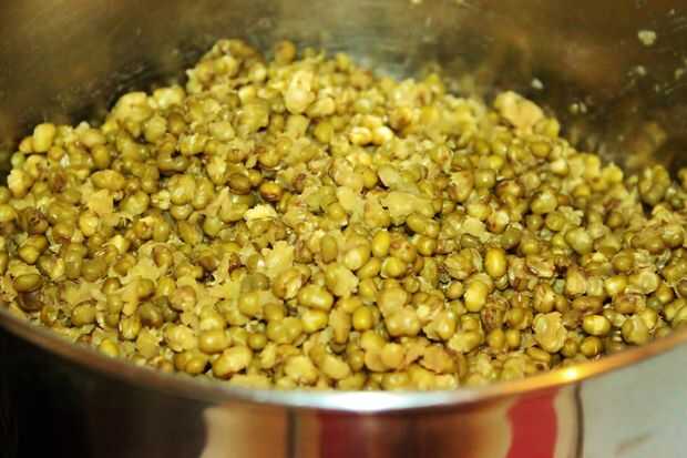 1. vapor cocer el frijol mungo hasta que esté cocido.