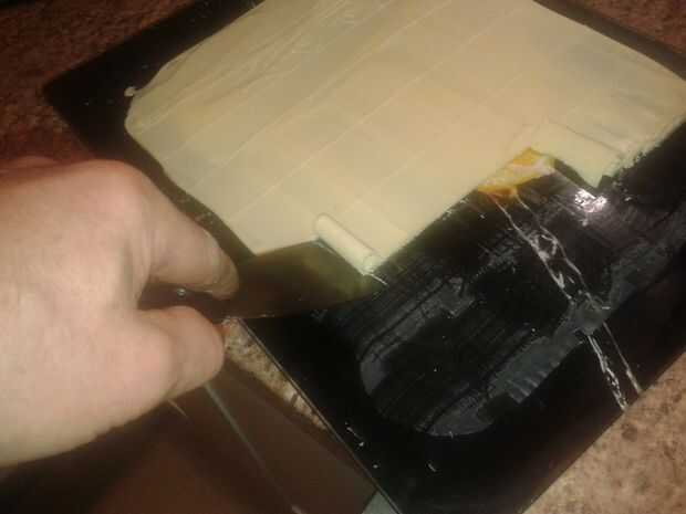 Bien derretir el chocolate con leche, luego extienda sobre el vidrio, ponerse de nuevo en el congelador.