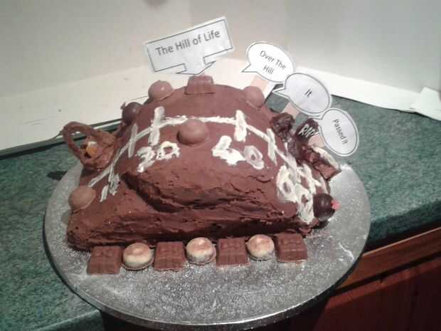Las tres primeras se muestra arriba eran varios pasteles de cumpleaños, la cuarta - la "colina de la vida" fue uno llevó en trabajar para mi 60 cumpleaños, con una base de chocolate con leche (con rosa bebé de jalea en un "panal" de chocolate blanco / "pañal") y en el otro extremo un ataúd de chocolate oscuro (con un bebé de jalea blanca adapté con un cuchillo afilado para ver esquelética) y un chocolate tumba de piedra. Extrañamente alguien tomó el ataúd primero y quedó la cuna (y terminó para arriba como la pieza central en una variante mi esposa tuvo que para trabajar para su fiesta de Navidad) Las versiones con el chocolate conejitos de Pascua debería ser obvio! (Su también mi Facebook de la bandera en caso lo aunque lo había visto en algún lugar antes)