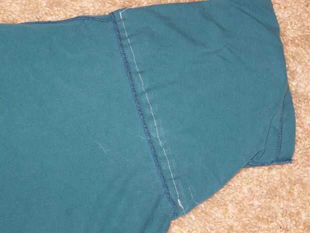 Coser los brazos aproximadamente 1/2 pulgada en la parte exterior de la costura donde se cosen al cuerpo de la camisa.