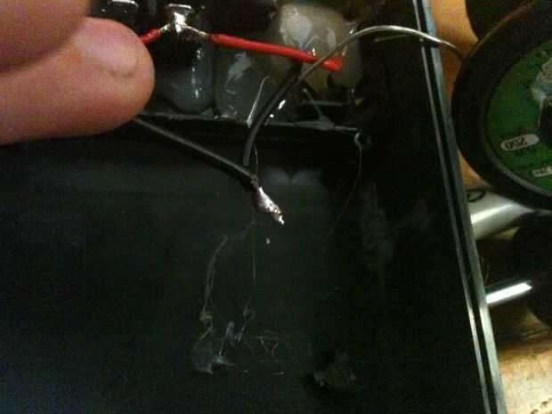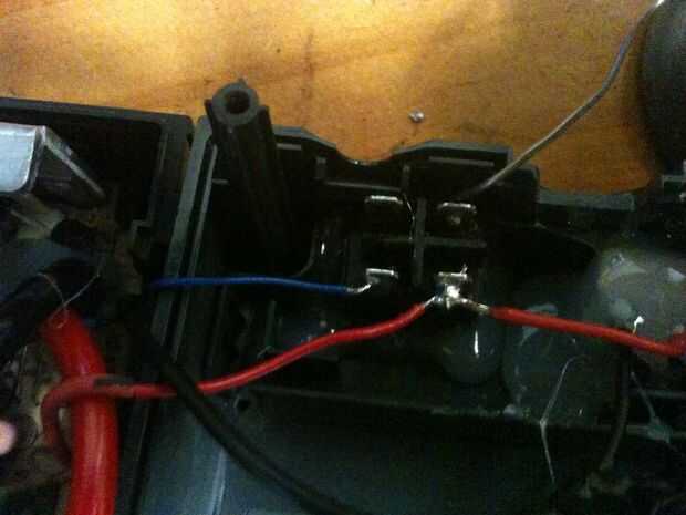 Ahora tenemos que hacer el cableado. Cable positivo del puerto USB y los + 5v de la placa junta a un contacto del interruptor y el cable azul de la placa sobre la otra conexión del interruptor. Por último, soldar 0v (o masa) del conector USB con el 0v (o tierra) en el tablero y aislar