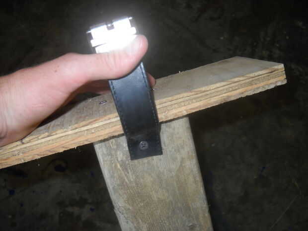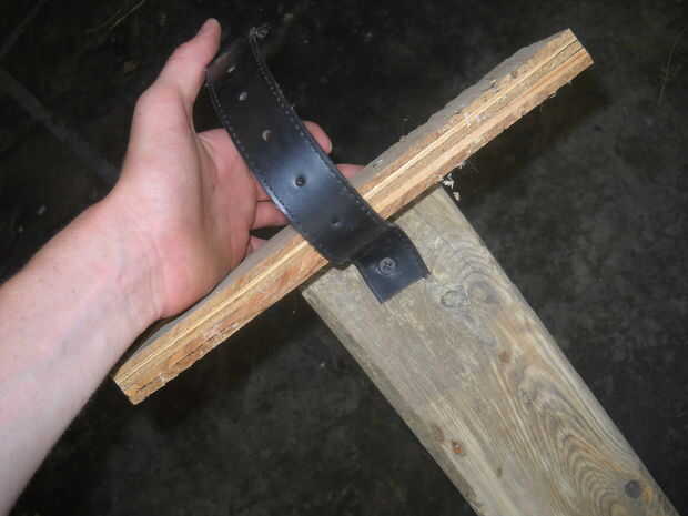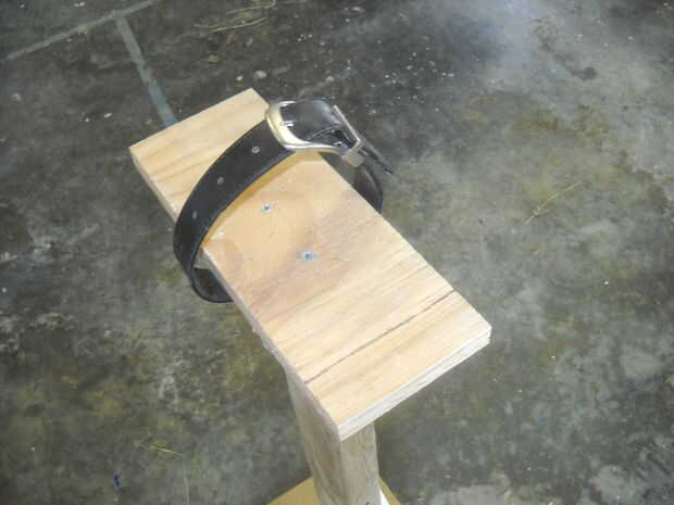Conecte las correas. Atornille el lado de la hebilla en una mitad de los zancos y en la otra mitad Atornille el extremo de sujeción. Hacer esto a dos zancos. A continuación coloque la correa de talón, esto mantiene el pie resbale hacia fuera. Use el cinturón de exceso que aún no ha sido utilizado. Poner su pie sobre el zanco y apriete la correa firmemente sin embargo desea, luego enrolle la correa del talón alrededor del talón y grapa o tornillo en su lugar.