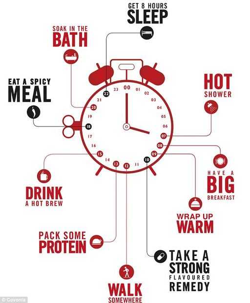 Terminar el día dando esos músculos cansados y doloridos un remojo en un baño caliente agradable. Un vapor final puede golpear el virus frío en la cabeza, ayudando a expulsar del cuerpo.