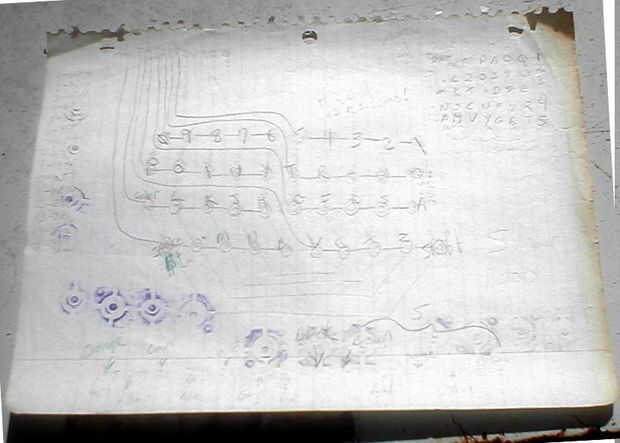 Cómo me las arreglé para figura hacia fuera que los cables conectados a donde era un poco más. Sobre todo se tenía que ver con cables llamados hacia fuera y la comparación de las matrices de los teclados a uno y otro. Cambiar una tecla del teclado había terminada la mutación, como perfecta completa no se podía hacer. En la foto es mis notas originales que hice para la tarea.
