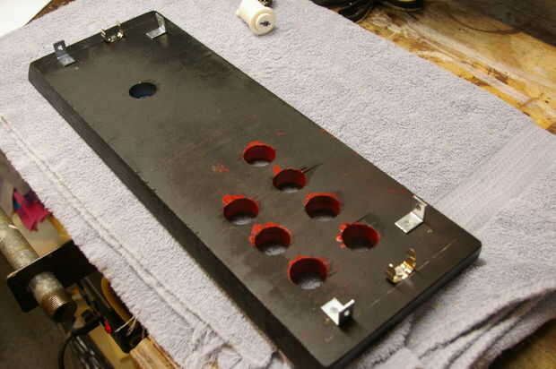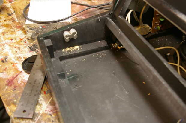 Quería fijar el panel de control para fácilmente podría quitarlo si quería cambiar hasta el diseño del panel en una fecha posterior. Las imágenes muestran los pasos que atravesó para fijar los ángulos de esquina 1" utilizados para alinear la placa con apertura y gabinete puerta quede para mantener en su lugar.