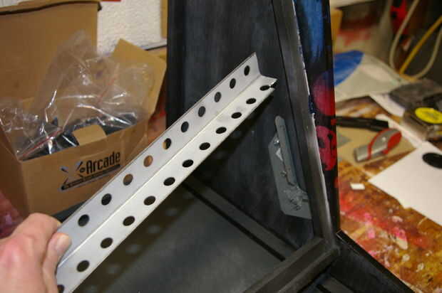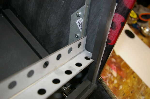 Los principales componentes que deberá tener disponible para esta sección son el monitor, soporte y plexiglás. Los soportes son los soportes de esquina originalmente utilizados para estructuras de cubierta. La idea es colocar los soportes y luego colocar hierro de ángulo a través de ellas. El monitor se encuentra entonces en el ángulo de hierro.