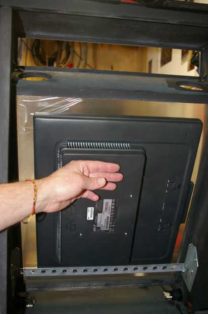 2. el panel de control en el lugar y luego una sensación dónde colocar los dos soportes para que el monitor se sentaría muy bien horizontalmente y verticalmente detrás de la luneta. El monitor terminó siendo perfectamente centro.