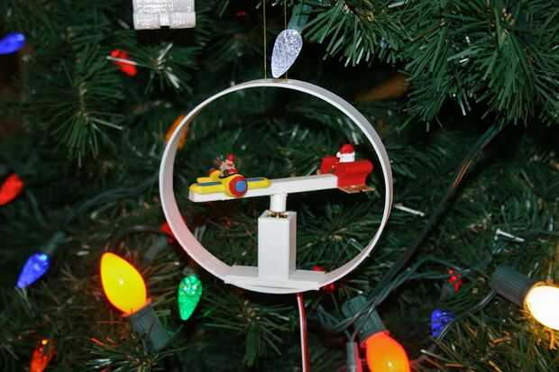 Este supercapacitor powered, ornamento 3d impreso, motorizado giratorio tiene Ingeniero escrito todo sobre él. Rudolph, montando en un avión, tira de Santa y en este dispositivo "no está disponible en las tiendas".