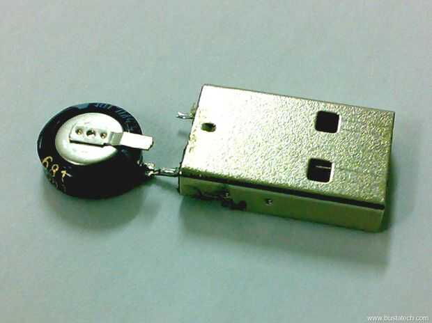 Luego soldar el pin negativo de la supercapacitor al pin 4 (0V) del conector USB macho.