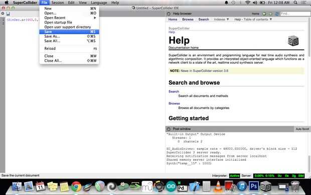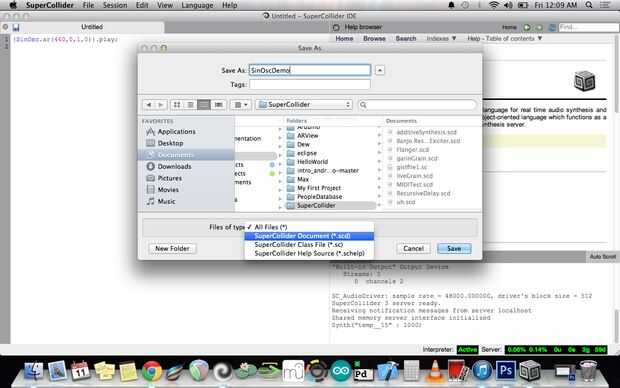 También puede guardar su oscilador impresionante para que pueda jugar con él más tarde! Haga clic en archivo y seleccione Guardar o guardar como elija donde guardar el archivo. Recomiendo guardar el archivo como un archivo .scd.