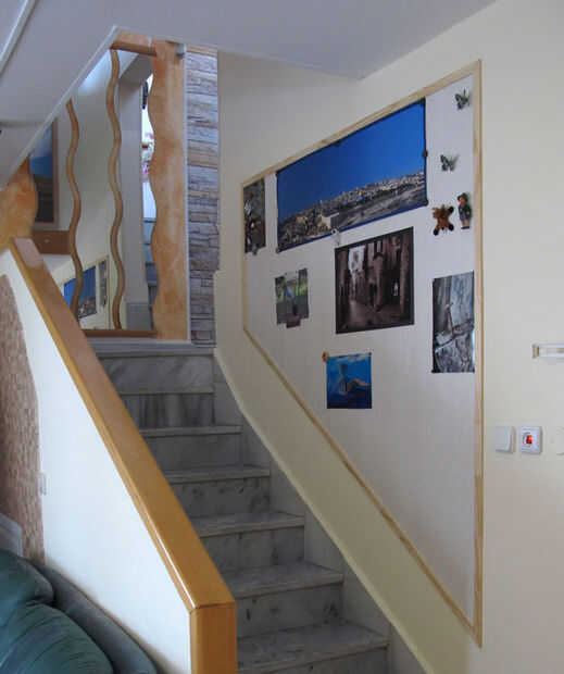 Solución: una "pared magnético" puede colgar las fotos por medio de imanes (como en una puerta del refrigerador) y tener fotos "inusitados" en carpetas cuando cambiar cuadros en la pared.