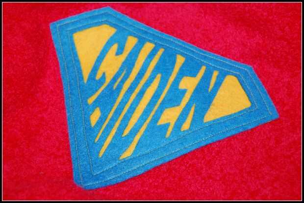 Voltea la toalla, sus aplicaciones en la parte posterior del centro y coser en su lugar. Y está todo listo para su poco uno en un superhéroe adorable!