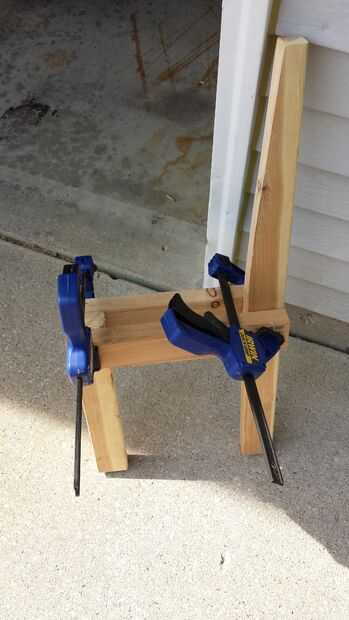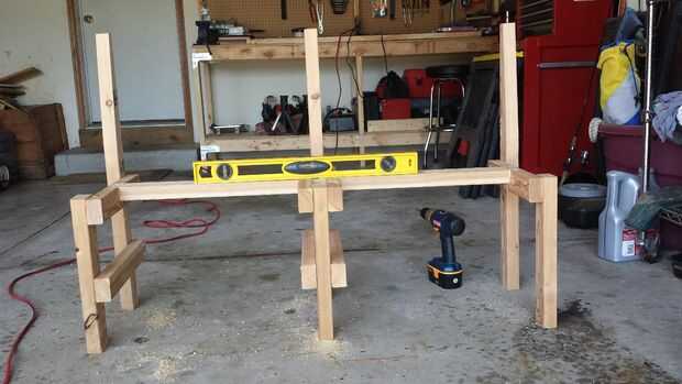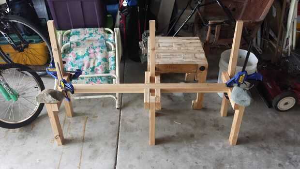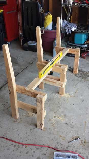 Luego agregué una barra transversal media (el 3'8 "pieza) para mantener las piernas medianas y laterales en el lugar. Cortar una muesca fuera este de largo 3'8 "pieza en cualquiera de los extremos y muescas emparejadas en la pierna de barras para el pedazo largo sat ras transversales. Entonces pegué este en su lugar después de que me aseguré que todos encajan bien y nivel.