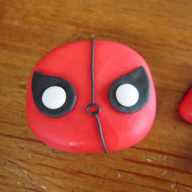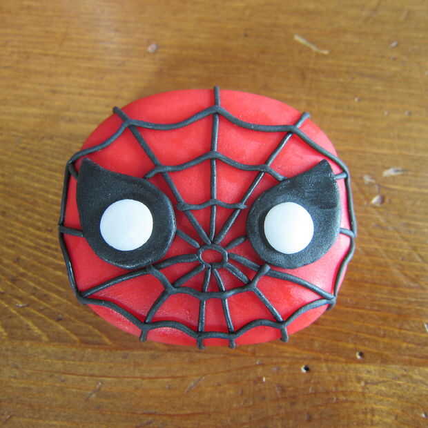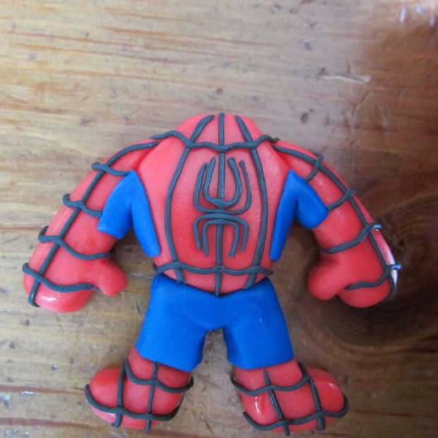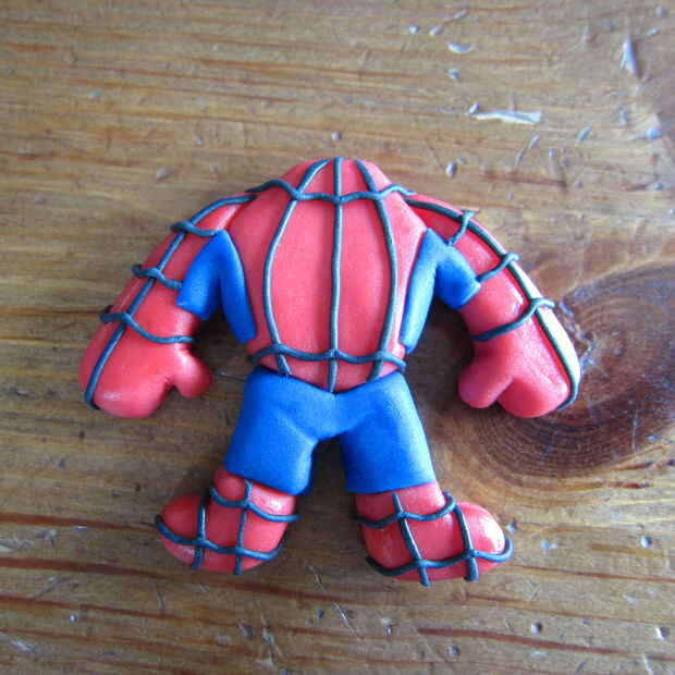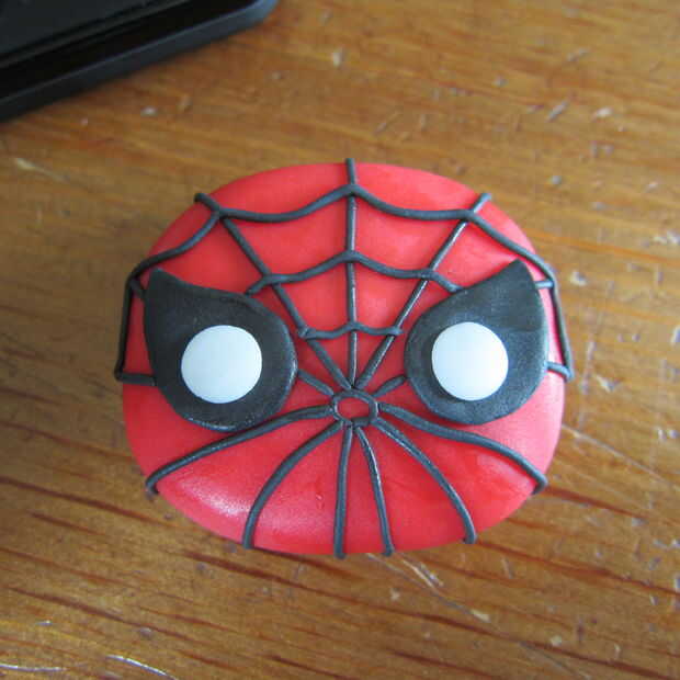 Set hombre araña a un lado para secar y endurecer un poco. Recomiendo hacer personajes con antelación para evitar cualquier daño a los personajes una vez que se colocan sobre la tarta.