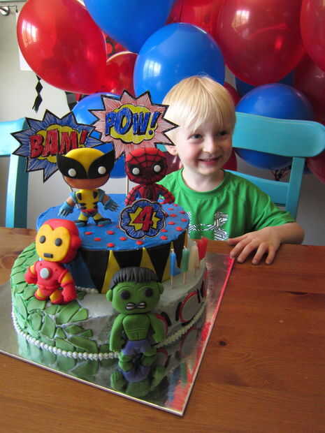 Utilicé un palillo de dientes en cada pie de cada personaje esté en posición vertical. Excepto el Hulk. Sólo se inclina ligeramente sobre el pastel.