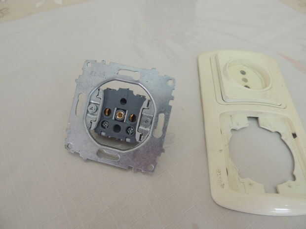 Tomar la toma de corriente y extraiga la estructura metálica. Luego, cortar con el Dremel y doblar en la forma indicada en los cuadros.
