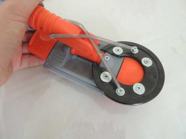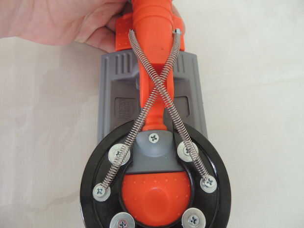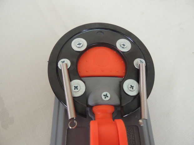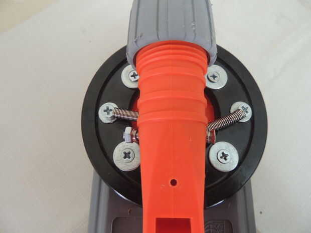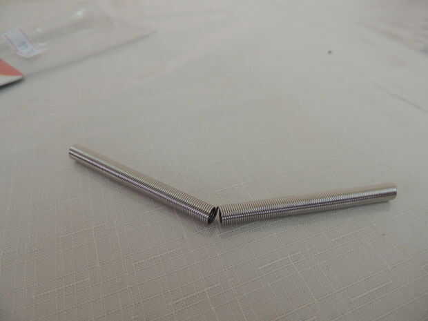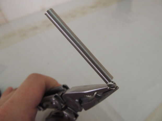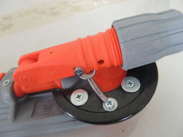 De la depiladora de la mano, tomar la primavera, córtelo por la mitad y transformar en dos resortes. Y luego, una a cada extremo, uno para el disco de refuerzo y otro al tornillo de sujeción del muelle principal. Se llevará a cabo como una especie de rattrap o catapulta, sin afectar al lanzador.