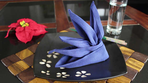 1. para empezar, seguir adelante y doblar una servilleta cuadrada en cuartos y voltéelo de manera que los extremos abiertos están apuntando lejos de usted.