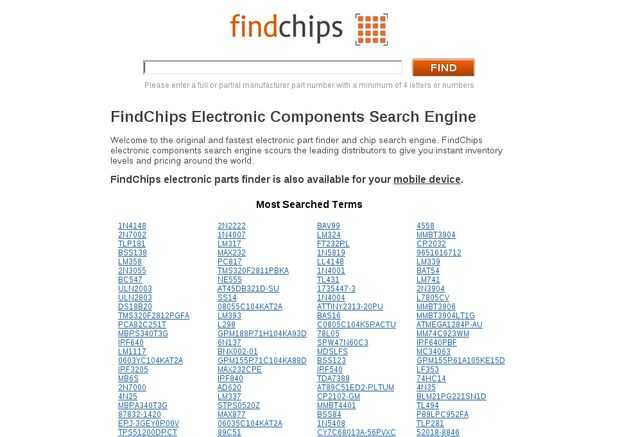 Otro motor de búsqueda de piezas, similar a octoparts. Findchips.com tiende a haber más resultados de búsqueda de octoparts a veces. Yo uso ambos igualmente.