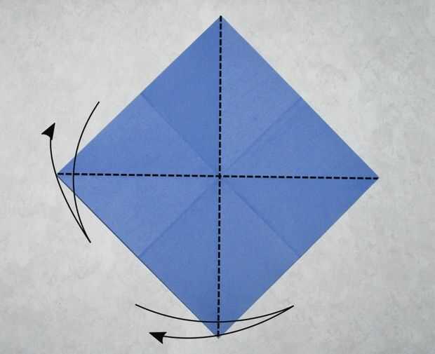 Doblar y revelar diagonalmente, pero mantener la solapa superior doblada hacia abajo.