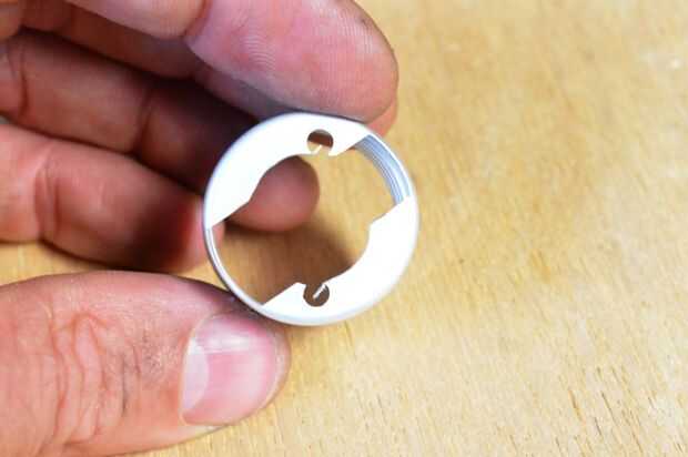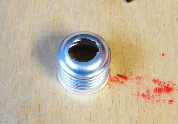 3. la sección femenina del tornillo tiene un agujero en la parte inferior que necesita para agrandar. Ello con el dremel hasta que el motor pueda caber a través de y atornille en el foco de luz.