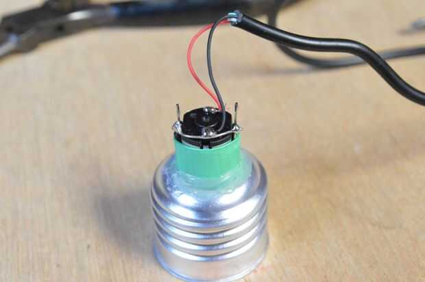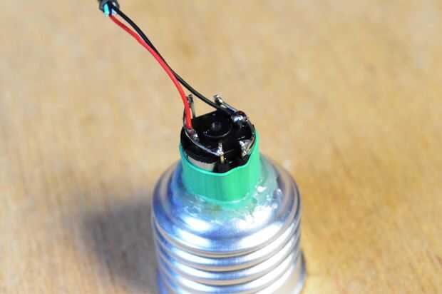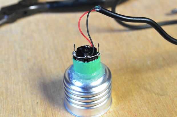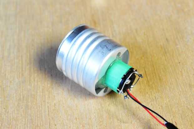 Ahora tiene Superman conectado al motor, es hora de agregar el LED. Como no hay mucho espacio dentro del zócalo del bulbo (tienes que hacer un poco moding a esto así) necesita mantener el LED lo más cerca posible a los motores.