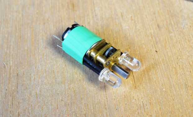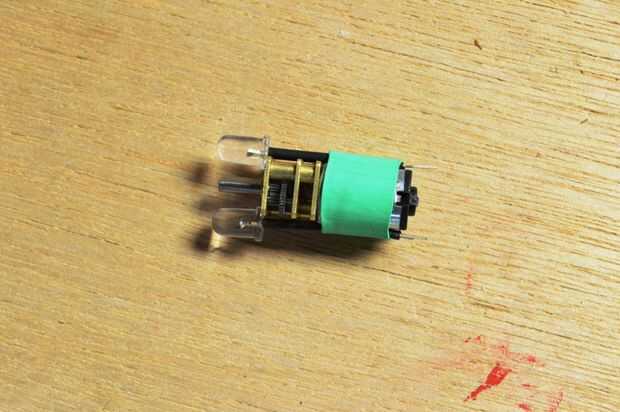 2. orientar el LED para que las patas negativas están cerca de la terminal de motor que el cable negativo es a. Hacer lo mismo con el cable positivo