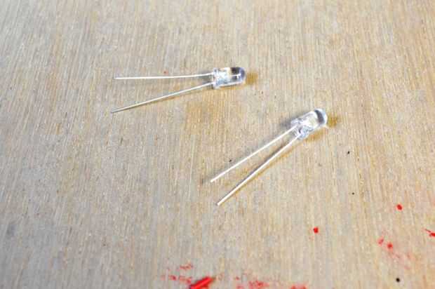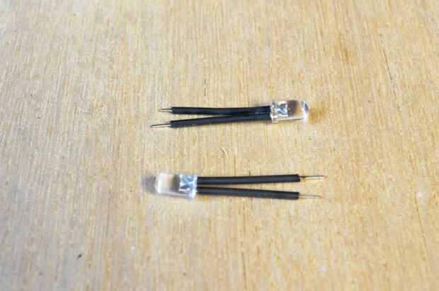 1. Añadir algún encogimiento de calor a cada una de las patas del LED.