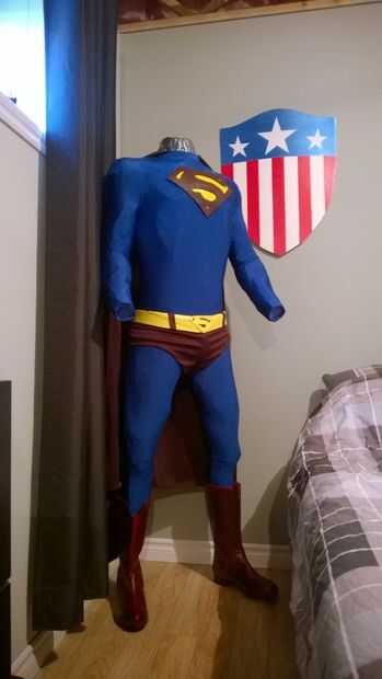 Siempre me gustó a Superman, sobre todo de Smallville. Creo que el mejor momento de Smallville cuando es Martha Kent da una caja a Clark. Cuando abre esa caja de '' regalo '', vemos el traje de Superman Returns (mi juego favorito de todas las películas de Superman). Decido hacer este juego sin tener que gastar mucho dinero. Además, no quería hacer sólo el traje, porque no tengo lugar para exponerlo. Yo quería hacer un maniquí para apoyar la demanda, todo ello con un presupuesto limitado de alrededor de 100$.