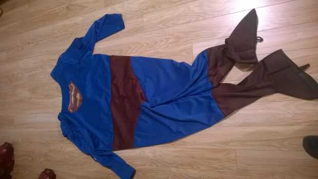 Nota: ya tenía un traje de superman barato/antiguo/feo regresa. Era un grande de XX (la izquierda sólo en Walmart en el tiempo). Lo puse 1 vez creo y luego nunca lo use una sola vez. Usé el cabo y la "ropa interior" para hacer mi traje real.