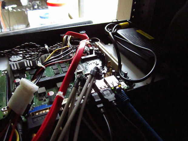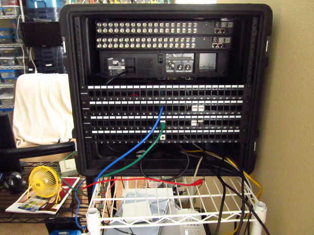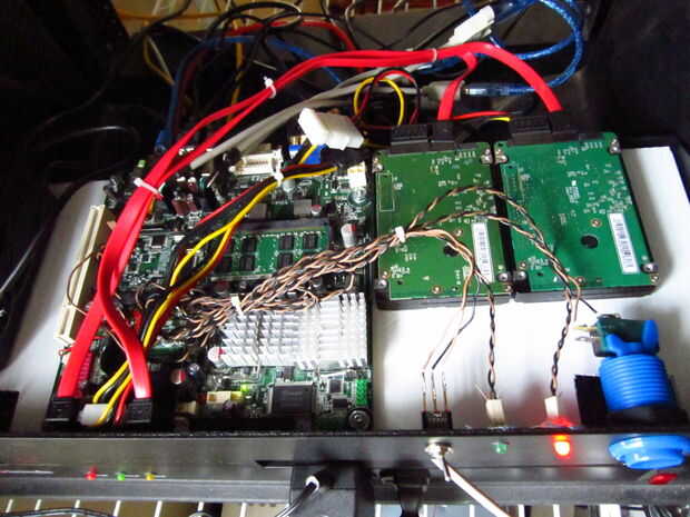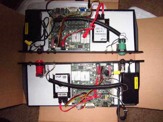 Esto es lo que tengo hasta ahora (este) siempre será un trabajo en progreso - 4 ordenadores Intel D945GSEJT fanless con unidades SSD SATA solo o dual SATA blanco caja disco duro inalámbrico de unidades con doble Rosewill gigE conmutadores de red (uno principal, una copia de seguridad) todos conectados a un claro cuadro. Consumo de energía total es muy por debajo de 100 watts - la media de ordenadores sin ventilador cerca de 12 vatios acciona para arriba y hacer algo simple en Windoze y la red de los interruptores son tal vez 5 vatios. Utilizo un par de Philips TV/monitores que utilizan cerca de 17 vatios (o a veces un monitor Acer mayores. Las motherboards de Intel pueden ejecutar monitores duales (1 vga 1 dvi-d) para que pudiera ejecutar 8 monitores, 2 para cada equipo. Los monitores ahora están conectados mediante cables vga estándar, pero en el pasado he utilizado los conectores extendidos que permiten atropellar vga cat5 - que trabaja muy bien con sólo una ligera degradación en la calidad de la foto. La philips son bonitas porque tienen VGA HDMI y conexiones de componente que me permite ejecutar mi equipo o mis cámaras de circuito cerrado de televisión en ellos.