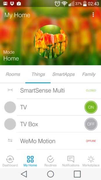 Para SmartThings, somos capaces de hacer dispositivos virtuales, a continuación, exponer los dispositivos como extremos del resto. No se va en esas áreas no tienen nada que ver con el Raspberry Pi, pero la imagen de arriba muestra un dispositivo virtual de TV que se enciende. El siguiente comando en el script de bash es lo que se utiliza para activar este aparato: (donde X es los datos personales de la autorización y el dispositivo)