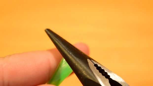 Cuando se derritió rápidamente apriete la parte fusión con alicates para pegar los dos lados juntos.