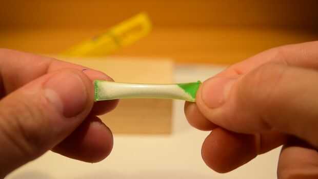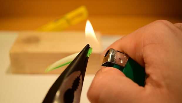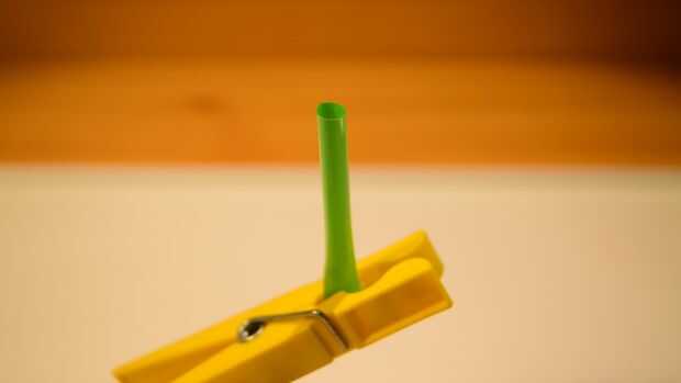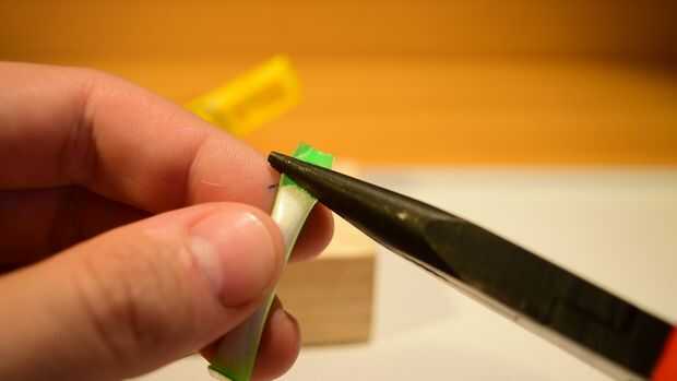 Para el primer intento utilicé sal para llenar el tubo de paja. Cuando está llena casi hasta el final (es importante dejar espacio suficiente para derretir el otro extremo) usé palo el otro extremo del tubo y método squeeze-derretimiento-Apriete otra vez también.