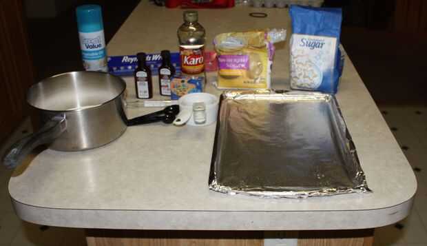 Una vez que han reunido todas las herramientas y los ingredientes línea tus galletas con papel de aluminio, darle una capa de luz de spray de cocina y dejar de lado por ahora.